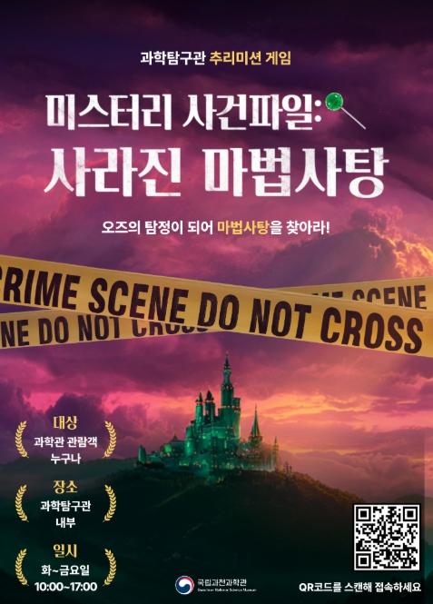『수수께끼(미스터리) 사건 파일: 사라진 마법 사탕』의 참여를 원할 경우, 별도의 앱 설치 없이 과학탐구관 입구에 설치된 안내판(안내 패널)의 정보무늬(큐알, QR)를 스마트폰으로 스캔하여 프로그램 페이지에 접속하면 된다. 3월 31일부터 화요일~금요일 오전 10시부터 오후 5시까지 과학탐구관에서 운영된다.