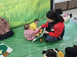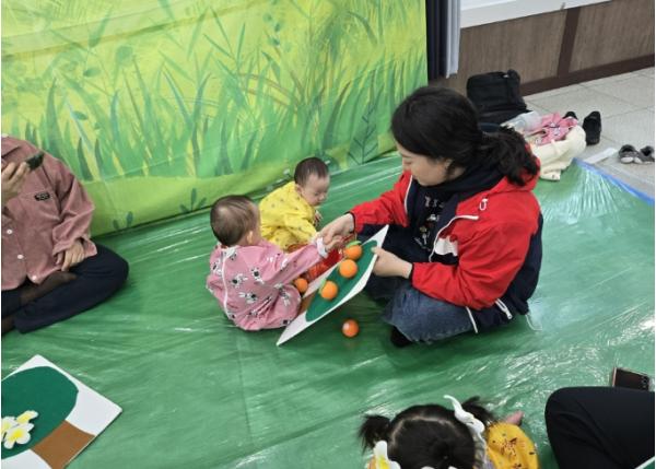 특히 귤껍질을 벗기고 과육을 만져보는 과정에서 소근육 발달을 유도하고, 자연물에 대한 호기심과 흥미를 높이는 데 중점을 두었다. 보호자들 또한 아이와 함께 놀이에 참여하며 긍정적인 상호작용을 경험했다.