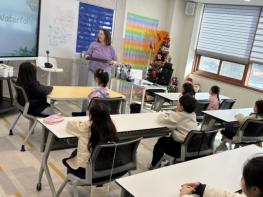 이번 프로그램은 원어민 교사와 함께하는 체험형 수업으로 진행됐으며, 지구온난화에 대한 이해를 높이고 탄소중립 실천의 중요성을 자연스럽게 익힐 수 있도록 구성됐다. 특히, 커피 찌꺼기를 재활용한 ‘커피박 키링 만들기’ 활동을 통해 새활용(업사이클링)을 직접 체험하고, 공기 정화에 도움을 주는 이끼 유리병 정원(테라리움)을 자연으로 생분해되는 폴리유산(PLA, 옥수수 전분 등 재생 가능한 식물 기반 자원에서 추출한 원료로 만든 친환경 수지) 소재 용기에 만들어 보며 환경보호의 가치를 몸소 느끼는 시간을 가졌다.