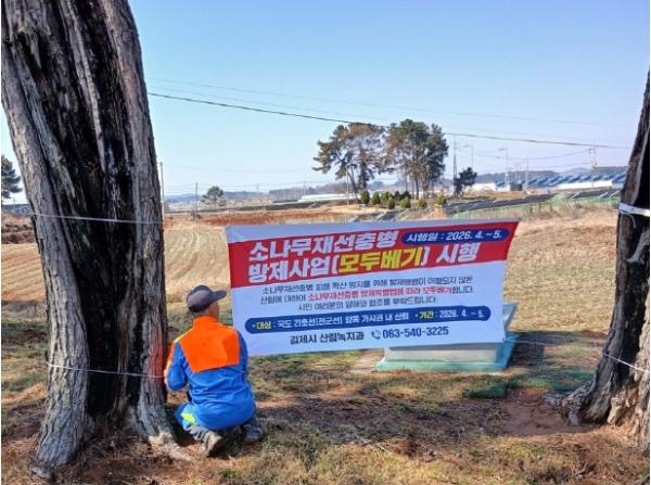 [중앙뉴스라인, 양병남기자] 김제시는 청정 산림을 보호하고 소나무재선충병 확산을 차단하기 위해 국도 21호선(전군선) 양측 가시권 내 소나무림을 대상으로 오는 4~5월 중 수종전환(모두베기) 방제사업을 추진한다고 밝혔다.