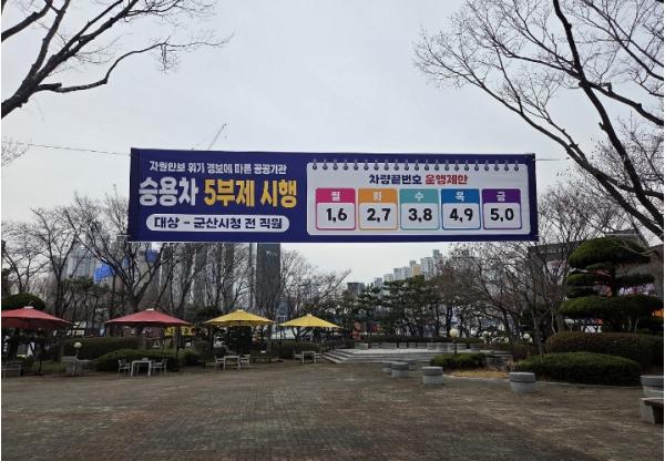 [중앙뉴스라인, 양병남기자] 군산시는 정부의 자원안보 위기 주의단계 발령에 따라 에너지 절약을 위한 공공부문 대응으로 공공기관 승용차 5부제(요일제)를 본격 시행한다고 밝혔다.