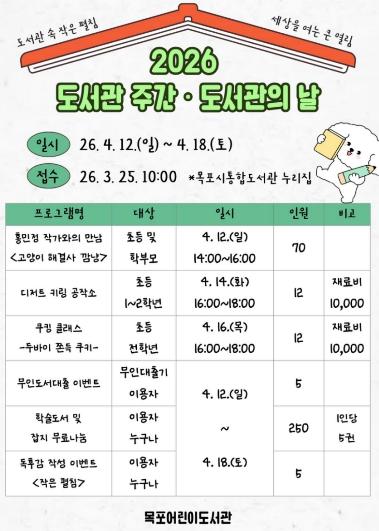 목포어린이도서관, 2026년 도서관의 날·도서관 주간 행사 운영