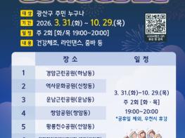 화, 목, 오후 7시부터 8시까지 운영…첨단쌍암공원 등 8개 공원서 진행