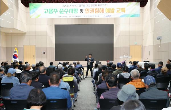 [중앙뉴스라인, 이상권기자] 고흥군은 26일 군청 우주홀에서 외국인 계절근로자 제도의 안정적 운영을 위해 2026년 상반기 계절근로자 프로그램 고용주 교육을 실시하고, 근로환경 개선과 인권 보호를 위한 지원 대책을 추진하고 있다고 밝혔다.