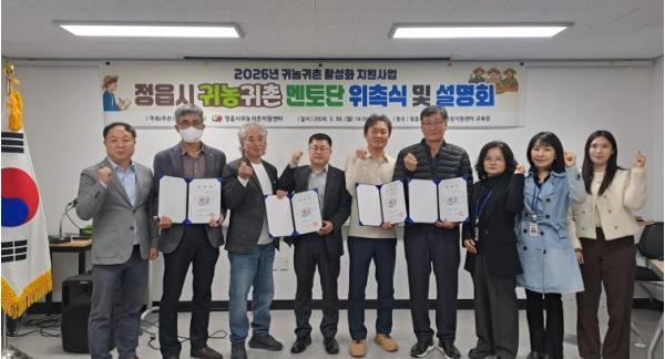 [중앙뉴스라인, 김용범기자] 정읍시가 지역 농촌에 젊은 활기를 불어넣고 청년 귀농귀촌인들의 안정적인 정착을 돕기 위해 지난 30일 귀농귀촌종합지원센터에서 ‘2026년 귀농귀촌 멘토단 위촉식’을 열고 본격적인 맞춤형 지원에 나섰다.