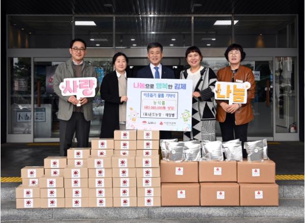 [중앙뉴스라인, 김용범기자] 김제시는 31일, 농업회사법인 (유)온도농장(대표 송현주), 태양별(대표 김대천)이 관내 저소득계층 및 사회복지시설 지원을 위한 이웃돕기 물품을 공동 기탁했다고 밝혔다.
