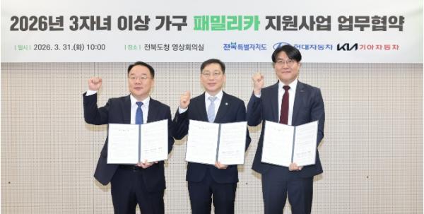 [중앙뉴스라인, 김용범기자] 전북특별자치도가 현대자동차·기아와 손잡고 자녀 3명 이상 다자녀가구를 위한 패밀리카 구입비 지원사업을 전국 최초로 본격 가동한다.