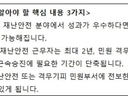 성과 중심의 인사 관리를 위해 승진 가산점 체계도 정비한다. 기존에는 재난안전 부서 근무 후 일정 기간이 지나야 가산점을 줬으나, 앞으로는 부서 전입 시점부터 즉시 가산점을 부여하도록 개선했다.