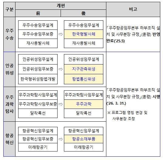 우주항공청 조직개편(’26. 3. 31.)에 따른 기존 과장급 공무원 인사