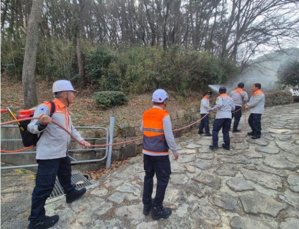 화재에 취약한 시설물을 중심으로 예비주수를 실시하는 한편, 비상소화장치함의 정상 작동여부를 점검하고 관계자를 대상으로 사용법 교육도 함께 진행했다.