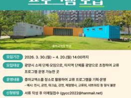 접수 기간은 3월 30일부터 4월 20일 오후 2시까지이며, 자세한 사항은 광양문화도시센터 누리집 공고문을 통해 확인할 수 있다.