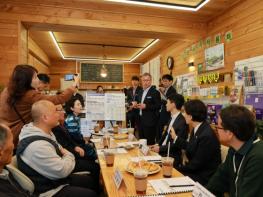 이날 장관은 옥천군의 농어촌 기본소득 추진현황과 사회연대경제 활성화 계획 및 모범사례를 보고받고, 지역 리더 및 주민들과 간담회를 가졌다. 간담회에는 농림축산식품부, 충북도, 옥천군 관계자를 비롯해 협동조합 및 마을공동체 관계자들이 참석해 현장의 다양한 의견을 공유했다.