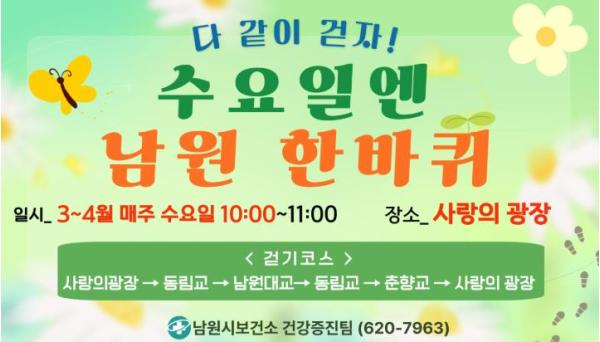 남원시보건소, 걷기 프로그램 ‘수요일엔 남원 한바퀴’ 운영