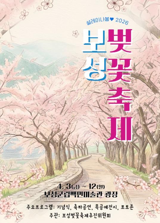 아울러 보성왕벚꽃터널을 따라 걸으며 자연경관을 즐길 수 있는 도보 이동 코스도 함께 안내할 계획이다.