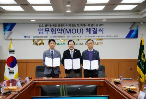 [중앙뉴스라인, 전은희기자] 전남대학교 수산해양대학 및 어촌양식연구소와 완도군은 지난 26일 업무협약(MOU)을 체결하고, 수산해양 분야 전문 인재 양성을 위해 힘을 모으기로 했다.