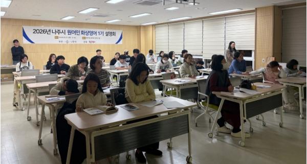 나주시는 지난 3월 31일 원어민 화상영어 1기 수강생과 학부모를 대상으로 ‘2026년 1기 나주시 원어민 화상영어 교육 사전설명회’를 개최했다고 2일 밝혔다.