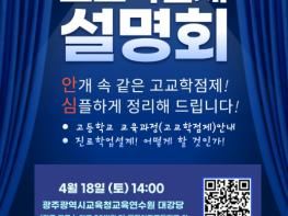 설명회에서는 광주고등학교 김정태 교사가 진로·학업 설계 및 고등학교 생활을 사례 중심으로 설명해 학부모들이 자녀의 고등학교 생활을 구체적으로 이해하고 진로·학업 설계 방향을 설정할 수 있도록 지원한다.