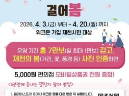 보건소 관계자는 “따뜻한 봄을 맞아 시민들이 일상에서 걷기를 실천할 수 있도록 봄을 주제로 한 워크온 챌린지를 기획했다”며 “아름다운 제천의 봄길을 걸으며 건강까지 챙길 기회가 될 것”이라고 말했다.