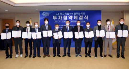[중앙뉴스라인, 김용범기자] 광주광역시는 11일 시청 비즈니스룸에서 국내 9개 기업과 총 573억원의 투자와 340여명 고용창출을 위한 투자협약(MOU)을 체결했다.