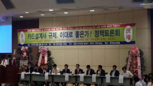 이번 정책토론회에는 전국신용카드모집인 1천여명을 비롯해 박병석 새정치민주연합 의원과 금융당국 및 여신금융협회 관계자 등이 참석했다.