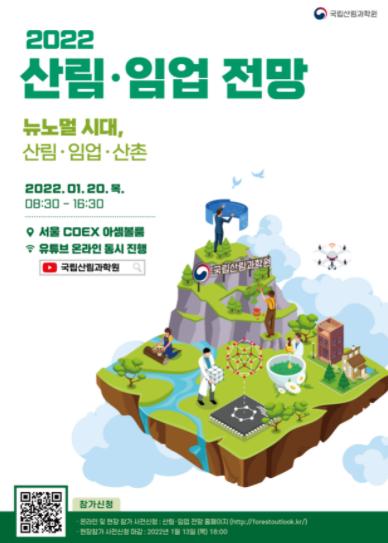 [중앙뉴스라인, 공성남기자] 산림청 국립산림과학원이 1월 20일, 코엑스(아셈볼룸)에서 개최되는 '2022 산림·임업 전망 발표대회'의 현장 참가자 사전신청을 시작했다고 밝혔다.