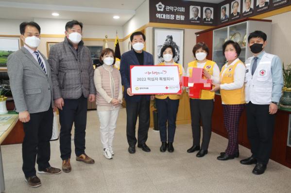 [중앙뉴스라인, 송상교기자] 서울 관악구의회는 "지난 7일 구의회 의장실에서 대한적십자사 서울지사에 2022년도 적십자 특별회비를 전달했다"고 8일 밝혔다.