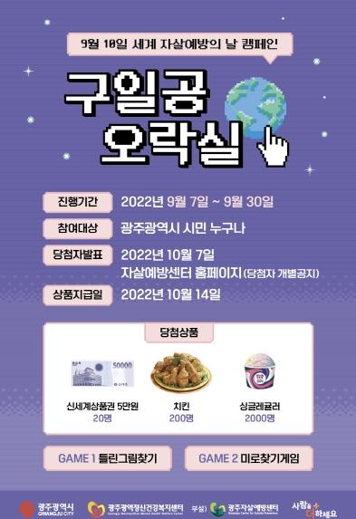 ‘구일공 오락실’을 주제로 진행되는 이번 캠페인은 세계 자살예방의 날과 광주시 자살예방 지원사업을 홍보하기 위해 마련됐다.