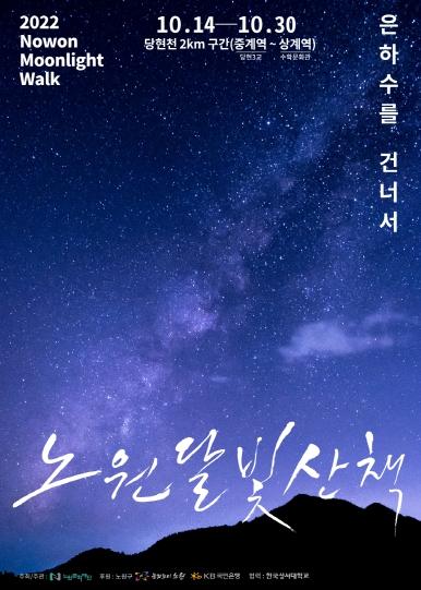 올해 노원달빛산책의 주제는 ‘은하수를 건너서’다. 위태로워 보이지만 샛별을 등대삼아 은하수를 건너는 ‘반달’을 모티브로 어렵게 헤쳐나온 코로나19 상황을 극복하고 미래로 나아가고자 하는 구민들의 염원과 희망을 담았다. 주제인 ‘은하수를 건너서’는 다시 3개의 소주제로 나뉘어 스토리가 전개된다.