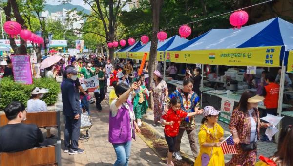 주요 내용으로는 가족과 함께 각 나라의 의상을 입고 거리행진을 하는 ‘세계의상 퍼레이드’, ‘다양한 나라 음식체험’, ‘세계 전통의상 포토존’, ‘세계전통놀이 마당’, ‘세계 전통공연’이 운영됐다.