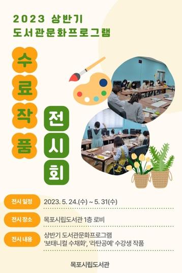 [중앙뉴스라인, 우제헌기자] 목포시립도서관이 2023년 상반기 도서관문화프로그램 운영을 마치고 오는 31일까지 도서관 1층 로비에서 수강생 수료 작품전시회를 개최한다.