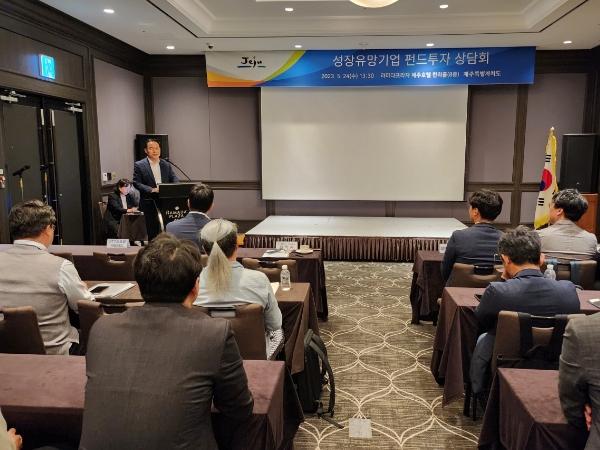 [중앙뉴스라인, 우제헌기자] 제주특별자치도는 24일 오후 도내 20개 기업 및 도외 6개 투자기관이 참여한 가운데 라마다프라자 제주호텔에서 ‘성장유망기업 펀드투자 상담회’를 성황리에 개최한다고 밝혔다.