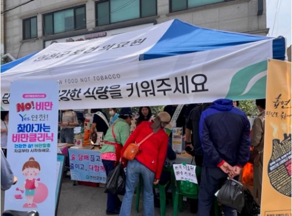 [중앙뉴스라인, 한소연기자] 연천군보건의료원은 지난 24일 제36회 세계 금연의 날을 맞아 전곡 5일 민속장터에서 금연 홍보 캠페인을 진행했다. 또한 비만 예방관리 캠페인을 진행하며 비만클리닉 회원을 모집하고 모바일 걷기 프로그램 또한 홍보를 진행했다.