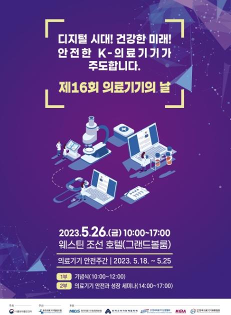 [중앙뉴스라인, 한소연기자] 식품의약품안전처는 ‘제16회 의료기기의 날’을 맞아 ‘디지털 시대! 건강한 미래! 안전한 K-의료기기가 주도합니다’를 주제로 기념식과 세미나를 5월 26일 웨스틴 조선(서울 중구 소재)에서 개최한다.