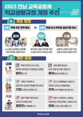 전라남도교육청은 교육공동체 현장의 목소리를 반영한 학교생활규정 개정을 위해 TF팀를 꾸려 활동에 들어갔다고 7일 밝혔다.