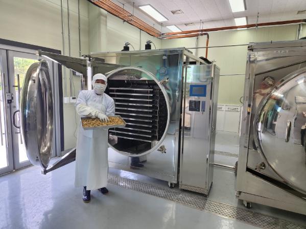 전체 시설면적 310.8㎡(곤충가공 235.2㎡, 양잠가공 75.6㎡)으로 양잠 산물의 건조를 위한 대형 동결건조기(150kg, 2대)를 포함해 식용곤충을 원료로 하는 환, 과립, 분말, 액상 등의 식품 생산을 위한 건조기, 분쇄기, 추출기, 포장기 등 30여종의 장비를 구비했다.
