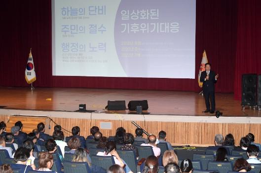 이취임식에 이어 강기정 시장은 시정 현안에 대한 특강을 통해 주민들의 적극적인 참여를 당부했다.