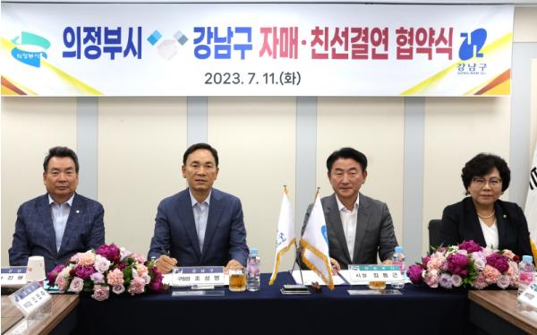 [중앙뉴스라인, 이승훈기자] 꿈이 모이는 도시, 미래를 그리는 강남구)가 11일 의정부시청에서 의정부시와 친선결연을 체결했다.