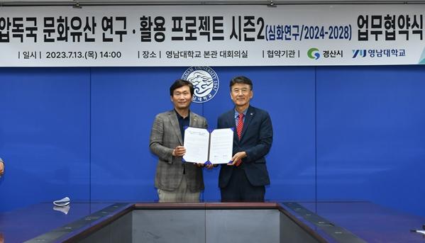 [중앙뉴스라인, 우제헌기자] 경산시와 영남대학교(총장 최외출)는 13일 영남대학교 본관 대회의실에서 압독국 문화유산 연구·활용 프로젝트 시즌2(2024-2028) 공동추진을 위한 업무협약(MOU)을 체결했다.