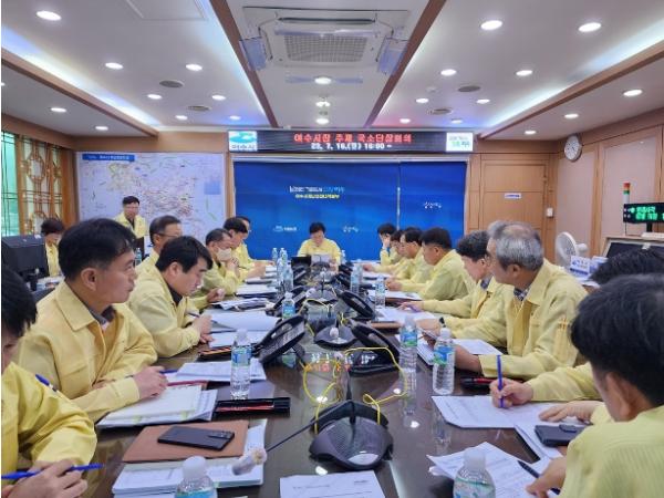 [중앙뉴스라인, 조성열기자] 여수전역에 지난 15일 19시30분 호우경보 발효 이후 16일 오후 3시까지 돌산읍 205㎜ 등 평균 84.4㎜의 집중호우가 쏟아진 가운데, 정기명 여수시장이 집중호우 긴급점검회의를 갖고 총력대응을 당부했다.