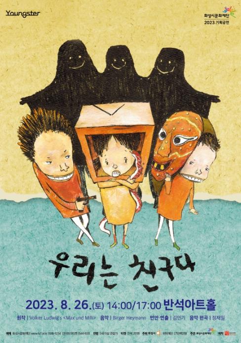 어린이·청소년을 위한 기획공연 ‘Youngster - 우리는 친구다'는 8월 26일 14시, 17시 반석아트홀에서 진행된다. 서로 다른 고민을 가진 세 아이들이 진정한 친구가 되는 이야기를 통해 부모님과 어린이들에게 공감과 재미를 선사할 예정이다.