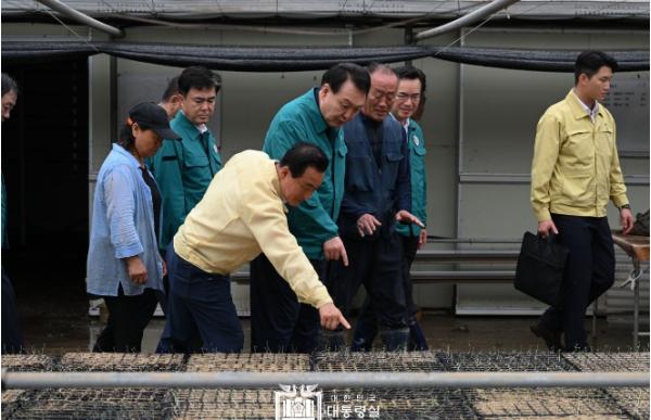 대통령은 이어서 "다행히도 주택은 많이 파손되지 않은 것 같은데 농작물 피해가 커서 안타깝다. 오늘 충남지사, 농림부 장관이 같이 왔는데 직접 상황을 봤으니 돈이 얼마가 들더라도, 정부가 원상복구를 지원하겠다"고 말하며 주민들을 위로했다.