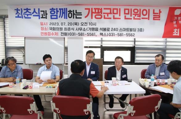 최춘식 의원은 가평군 내 각종 단체와 주민들에게 민원사항을 전달받고, 추진 방향을 함께 논의했다.