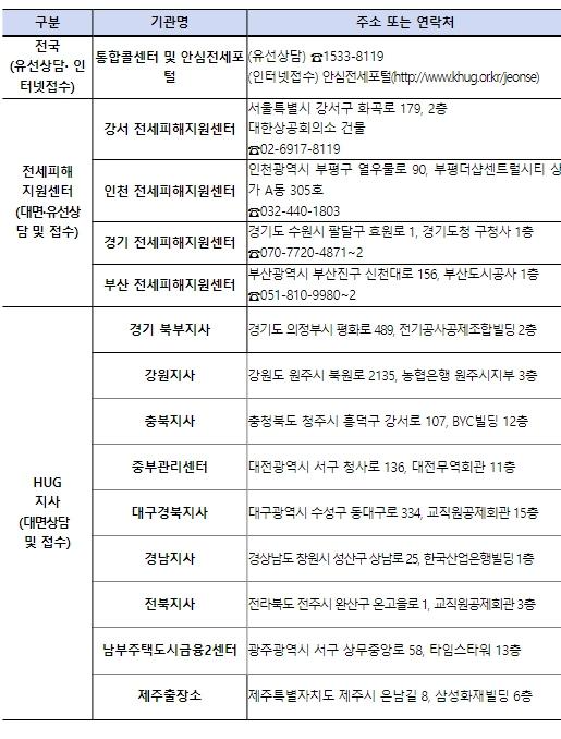 전세사기로 어려움을 겪고 있는 임차인은 거주지 관할 시?도에 피해자 결정 신청을 할 수 있고, 위원회 의결을 거쳐 피해자로 결정된 자는 주택도시보증공사(HUG) 전세피해지원센터(대면?유선) 및 지사(대면)를 통해 지원대책에 대한 자세한 안내를 받을 수 있다.