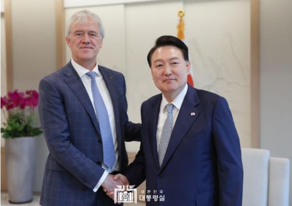 앞서 대통령은 마크 루터(Mark Rutte) 네덜란드 총리와 그간 3차례 회담*에서 자유민주주의 및 시장경제라는 보편가치를 공유하는 양국이 경제안보 협력의 이상적 파트너라는데 인식을 같이한 바, ASML社가 기존 투자에 이어 한국에 추가적으로 반도체 장비 생산공장을 설립하게 된다면 양국 반도체 산업 간 시너지 창출은 물론 글로벌 반도체 공급망 안정에도 크게 기여할 것이라고 강조했다.