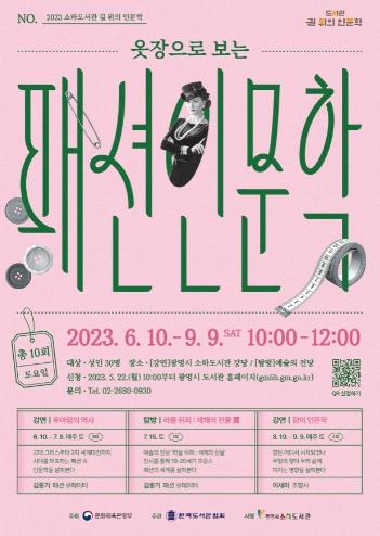 소하도서관은 앞서 '옷장으로 보는 패션인문학 : 우아함의 역사' 프로그램을 진행해 강연과 탐방으로 시대를 풍미한 패션의 인문학적 요소를 역사적 흐름을 살피며 성황리에 마무리한 바 있다.