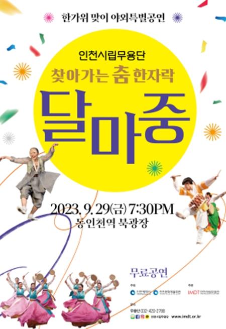 9월 29일 추석 당일 저녁 7시 30분, 동인천역 북광장에 특별 무대를 설치해 진행되는 인천시립무용단(예술감독 윤성주)의 한가위 특별 야외공연 '달마중'은 추석 명절 이후 이어지는 긴 연휴를 우리 전통의 춤과 함께 시작하는 색다른 시간이다. 차례를 치르고 여유로운 휴식을 취하는 지역민뿐 아니라 차이나타운, 월미도 등 인천을 찾아온 관광객들에게도 인천을 대표하는 시립무용단의 춤을 선보일 수 있는 공연이기도 하다.