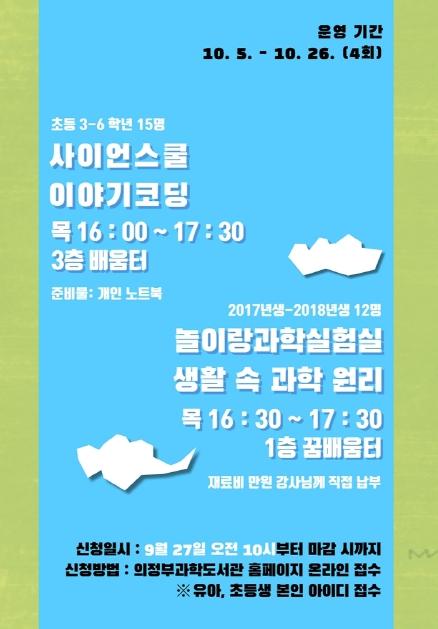 초등 3~6학년 대상 ‘이야기 코딩’과 2017~2018년생 미취학 아동 대상 ‘생활 속 과학 원리’가 준비돼 있다.