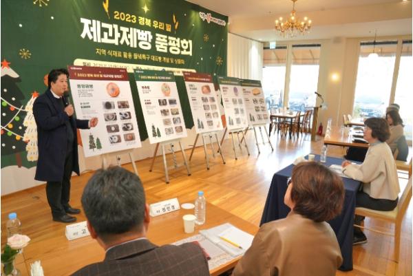 이날 행사에는 포항, 경주 등 특구 지역특산물이 들어간 부추빵, 시금치 핫도그, 산딸기 카스테라 등 10종을 소개했으며, 특히, 농업기술원이 육성한 검정콩과 우리 밀로 만든 콩앙금빵 '특구빵'을 선보였다.