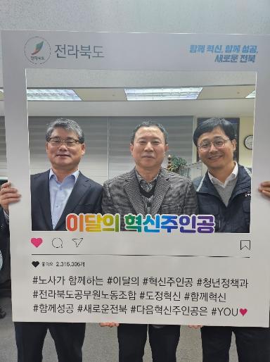 전북도는 매월 다른 주제로 ‘이달의 혁신주인공’을 선정하고 있는 가운데, 11월에는 농업·수산 등 특정 분야에 정통한 전문지식과 경험을 바탕으로 생산성 증진에 기여한 직원 대상 ‘이달의 전문가 주인공’을 선정했다.