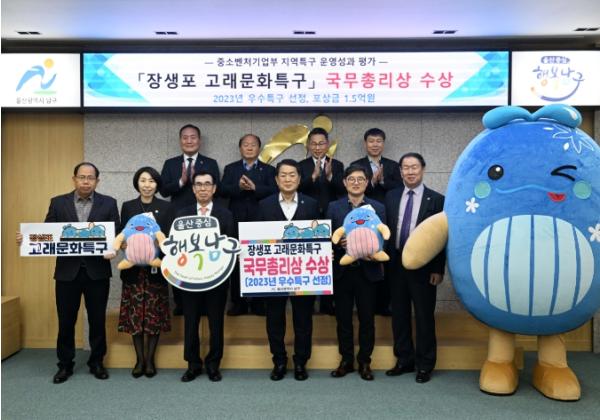 울산 남구는 장생포 고래문화특구가 28일 중소벤처기업부 ‘2023 지역특구 위원회’에서 우수특구(2위)로 최종 선정돼 국무총리 기관표창과 포상금 1억5천만 원을 수상했다고 밝혔다.